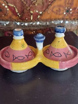 Colorful Moroccan Ceramic Condiment Set w/ Fish Design$21Owasco, NY