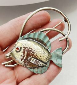 ANTIQUE HISTORICAL OSKAR J W HANSEN SCULPTOR STERLING SILVER ENAMELED LARGE BROOCH OOAK!$350Rancho Mirage, CA
