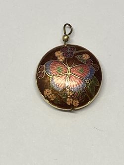 Red cloisonné butterfly & floral pendant necklace pre owned$9Plano, TX