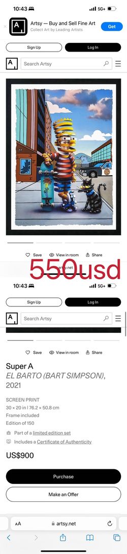 Super A EL BARTO (BART SIMPSON), 2021 SCREEN PRINT$550Seattle, WA