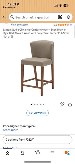 Brand New Braxton Studio Olivia Mid-Century Modern Scandinavian Style Dark Walnut Wood with Grey Faux Leather Pub Stool (Set of 2)$95Titusville, FL