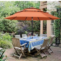 3 Tiers 9FT Solar Patio Umbrella, Outdoor Umbrella with 32 LED Lights for for Deck, Pool, Garden, Backyard (Orange$40Rancho Cucamonga, CA