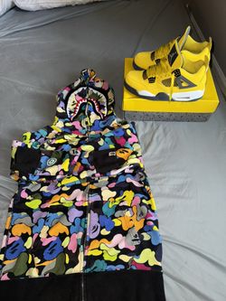Bape Multi-Camo Shark Full Zip Up X Jordan 4 Retro Lighting$250Vero Beach, FL