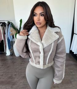 Cream Leopard Moto Jacket Small-large$60San Gabriel, CA