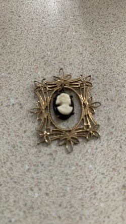 vintage gold-tone filigree cameo pendant featuring a carved profile of a woman, which can also be worn as a brooch$20Elizabeth, NJ