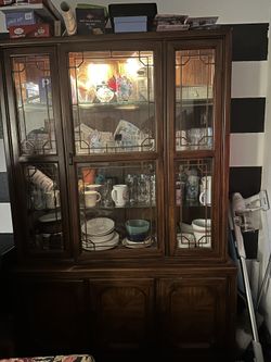 vintage wooden china cabinet / hutch with glass doors and display lights.$120Carbondale, IL