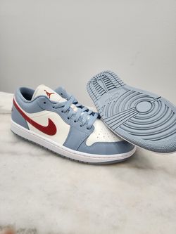 New Nike Air 1 Low sneaker in the "Sail/Dune Red-Blue Grey-White" colorway$60Weslaco, TX