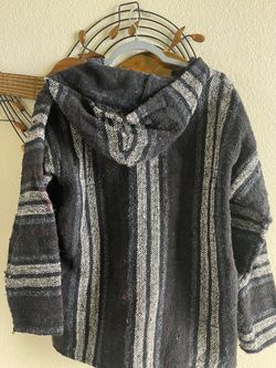 Authentic Mexican Baja Hoodie - Woven Pullover Sweater Jacket Wolf Grey Size L. $38Houston, TX