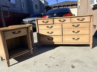 SoldMCM VINTAGE WOOD 7 Drawer Dresser + 2 Matching Side Tables$175San Diego, CA
