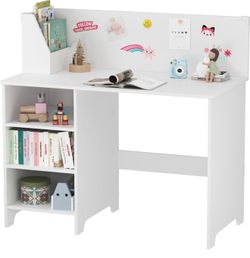 Brand New Kids Desk, Engineering Wooden Kids Study Desk with Hutch, School Study Table with Book Storage, Student Writing Table for 3-8 Years Girls Bo$100Oakland Park, FL