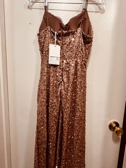 Host and singer's brand new gold sequined, front-slit, sexy, stretchy evening gown. Comes with tag. Fits sizes XS-S.$158Alameda, CA