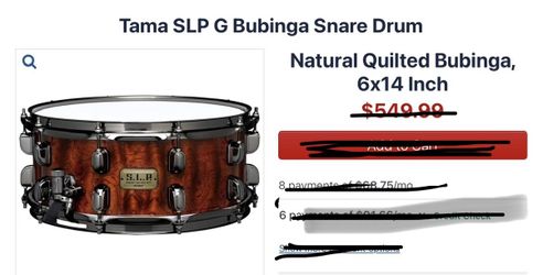 TAMA Bubinga Snare drum$425Miami, FL