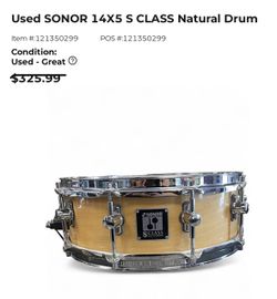 SONOR S CLASS SNARE DRUM$300Miami, FL