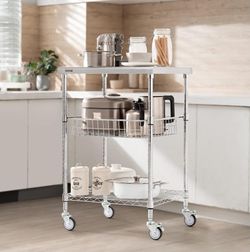 VEVOR Kitchen Utility Cart, 36.6"x20"x24" 3 Tiers Wire Rolling Cart, 470LBS Capacity Steel Service Cart with Brake Wheels, Storage Trolley with 76mm $79Los Angeles, CA