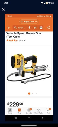 Dewalt 20V MAX Cordless 10,000 PSI Variable Speed Grease Gun (Tool Only)