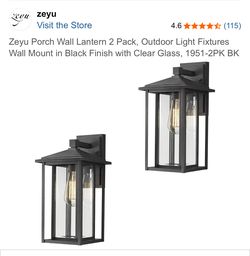 “Brand New” Zeyu Porch Wall Lantern 2 Pk. Outdoor Light Fixture Wall mount In Black Finish With Clear Glass $45Redondo Beach, CA