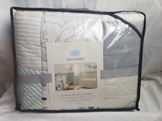 Cloud Island Baby Bunnies 4 Piece Nursery Crib Set Green Tan Gray Bedding NEW