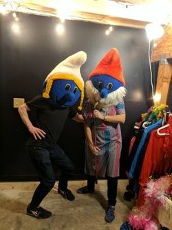 Vintage Smurf Papa and Smurfette Mascot Heads Costume