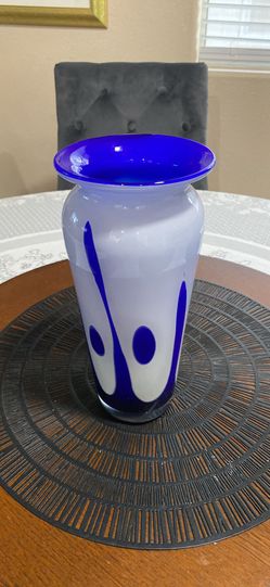 10”H Cobalt Blue & White Art Glass Vase( W Trop & Decatur $35Las Vegas, NV