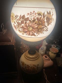 Vintage Double Globed Hurricane Lamp W/fall Flowers Hand Painted (large)$100Dodge City, AL