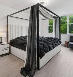 Cream Tessa Upholstered Metal Canopy Bed$800Hollywood, FL