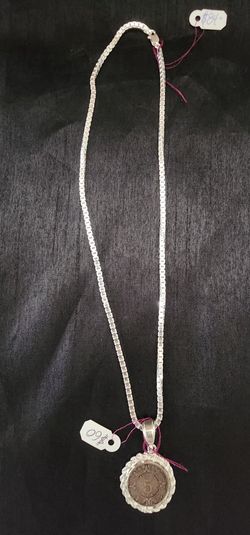 .925 Box Silver Necklace/ 5 Centavos Silver Coin And Bezel $144Riverside County, CA