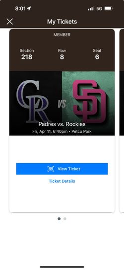 $65 Padres Tickets For Friday 4/11$65San Diego, CA
