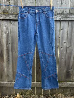 NO BOUNDARIES RED GEM ACCENT WIDE LEG Cotton Denim Jeans Sz 3$30Hillsboro, OR