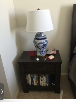 Dark Wood Nightstand + Blue & White Porcelain Lamp – Set$140Santa Monica, CA