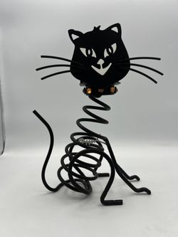 PartyLite Stones Black Cat Votive Candle Holder Metal Spiral Skeleton Halloween$25Westminster, CA