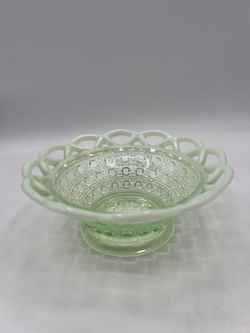 SoldVintage Imperial 6” Uranium Green Vaseline Opalescent Glass “Open Lace” Bowl$35Westminster, CA