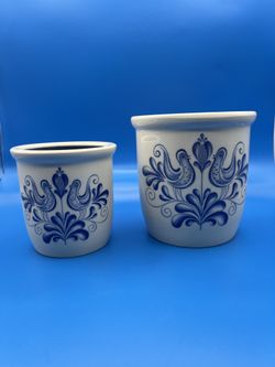 2 DDR German Pottery Blue Bird Mid-Cent Folk Art Crock Canister Pot Ceramic$35Westminster, CA