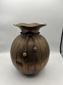 Vintage Patina Striped Brass Money Bag Vase Braided Rope Tassel Accents 11”Tall$40Westminster, CA