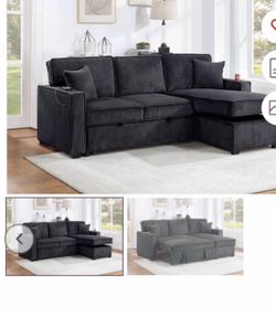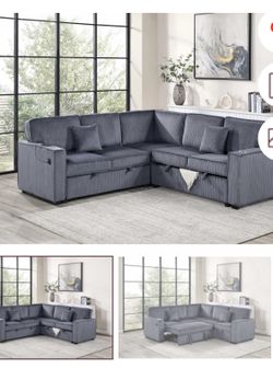 $550. Sectional Pull Out Bed With Storage USB Cup Holder Available,I Ivory,Dark Gray,Corduroy$550Long Beach, CA