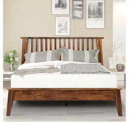 New In Box Bed Frame with Headboard 100% Solid Wood Platform Bed, Mid Century Modern Wood Bed Compatible with All Mattresses, Non-Slip an$150Ontario, CA