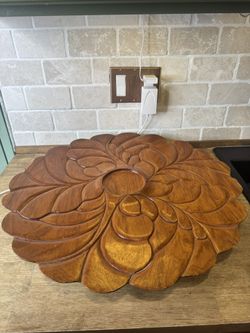 Vintage Wood Floral Lazy Susan Rotating Teak Wood Tray from Philippines $180Mukilteo, WA