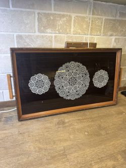 Vintage Wood Tray with Lace Doiley Design Under Glass MCM $20Mukilteo, WA