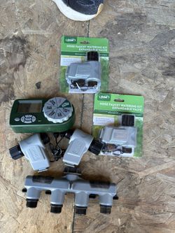 “New Orbit hose timer watering kit with multiple valves and 4-way splitter$55Los Angeles, CA