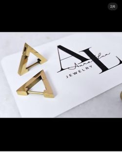 chic triangle Huggie earrings, beautifully finished in 18k gold plating. Designed to be tarnish-free and hypoallergenic,$15Chicago, IL