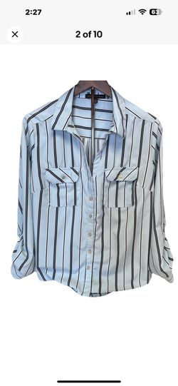 Adrienne Vittadini Used Medium Blue/white / Blk blouse Striped 97% Polyester$22Laguna Beach, CA