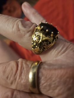 Size 9 Ring. 24k Gold Plated. Antique Style. With Amnyststone.$25Lillington, NC