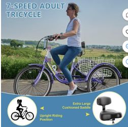 NAIZEA Adult Folding Tricycle 7-Speed, 20/24/26-Inch Three Wheel Cruiser Bike with Cargo Basket, Foldable Tricycle for Adults, Women, Men, Seniors, Te$190Chino Hills, CA