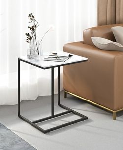 White Faux Marble Side Table: Modern C Shaped End Table Sofa Coffee Snack Accent Laptop Table with Black Metal Frame Sintered Stone Table Top B$40Chino Hills, CA
