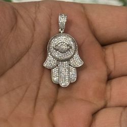 Moissanite Hamsa Hand Pendant – 925 Sterling Silver – Iced$100Boston, MA