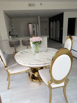 Luxury Round Teal Marble Dining Table w/ Gold Base + Chairs$1,200Atlanta, GA