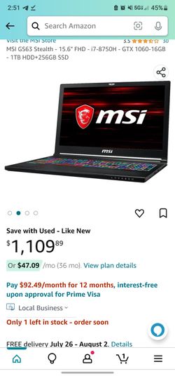 MSI GS63 Stealth$750Fresno, CA