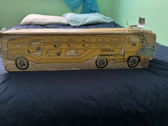Vintage Tonka Car Carrier Yellow Truck Pressed Steel Toy #840 27"$200Darien, IL