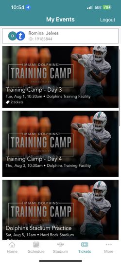 DOLPHINS STADIUM PRACTICE Sat Aug 5th 11am$40Miami, FL