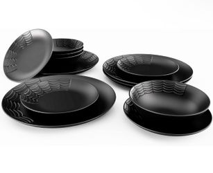 Nomnu Spiderweb Dinnerware Set (12 Pieces) - 4 Dinner Plates, 4 Salad Plates, 4 Bowls - Black Matte Porcelain Goth Dinnerware Set - Halloween Spooky C$50Garden Grove, CA
