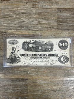1862 Confederate States of America $100 interest-bearing note (T-39 or T-40 variety). Civil War Era $185Los Angeles, CA